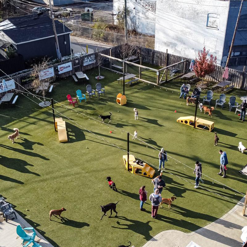 Are You Ready for a Tail-Waggin' Good Time? Stop feeling guilty about leaving your dog at home and start making memories together at PG&J's Dog Park Bar.